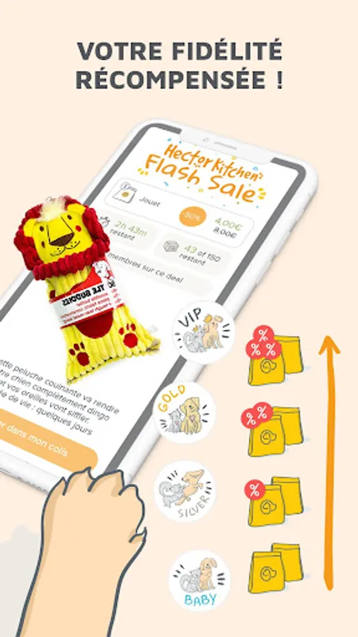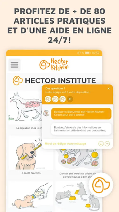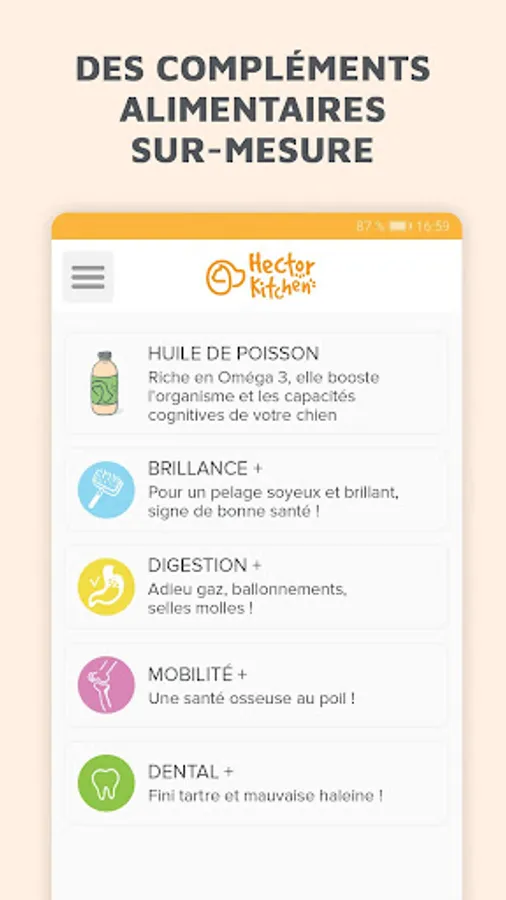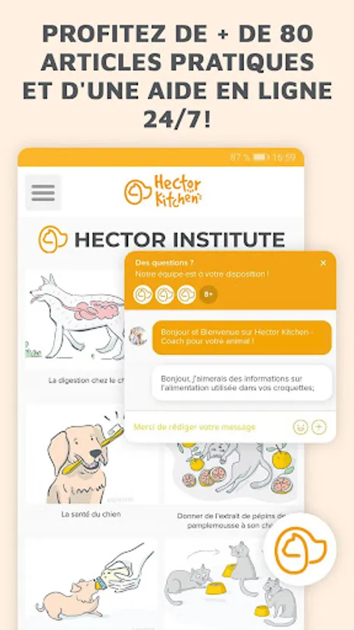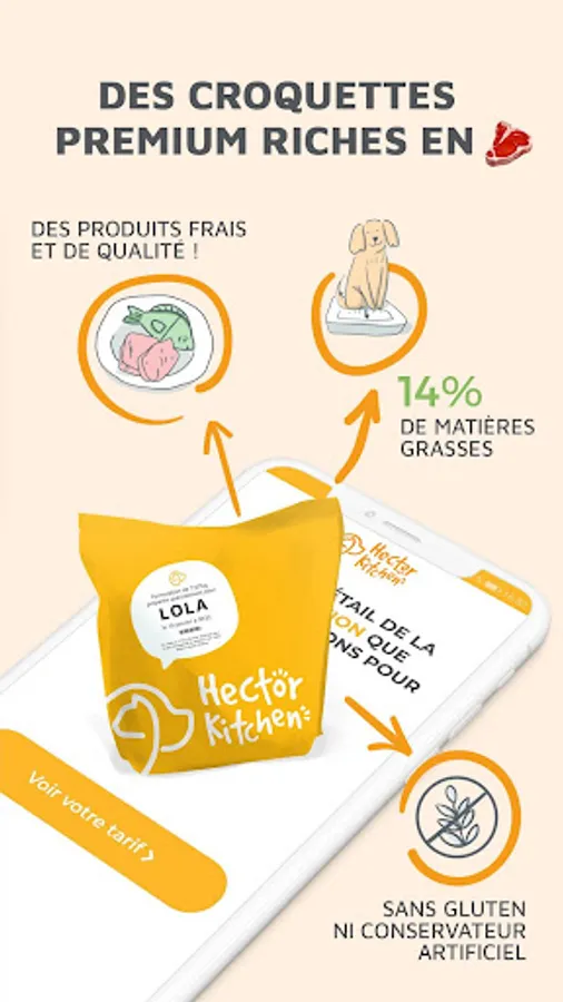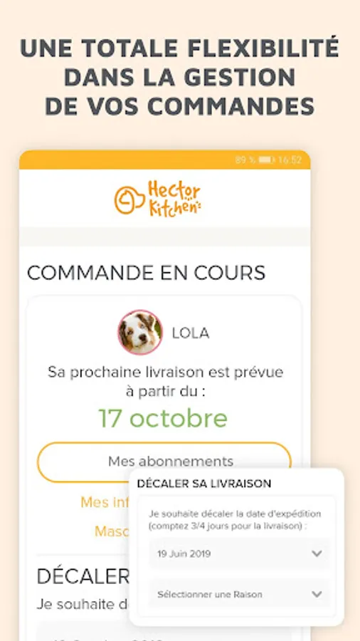 Order online, even when you're on the move, the healthy and unique kibble of your hairballs! Update your pet's nutrition profile, shift or advance your next order, add a food supplement .... All this accessible anywhere, with one click on your app!