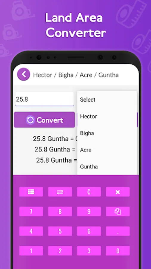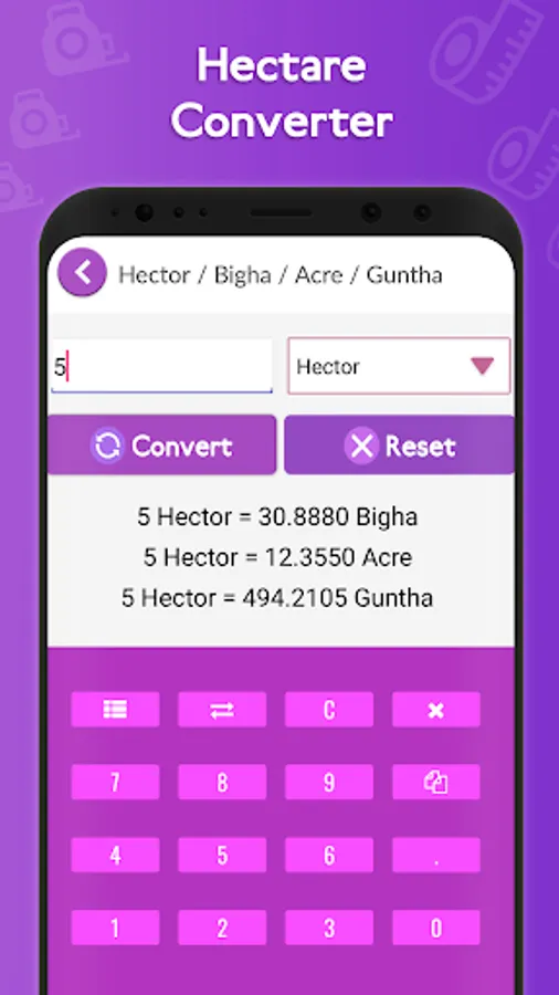 Hectare, Bigha, Guntha, Acre, All Converters.