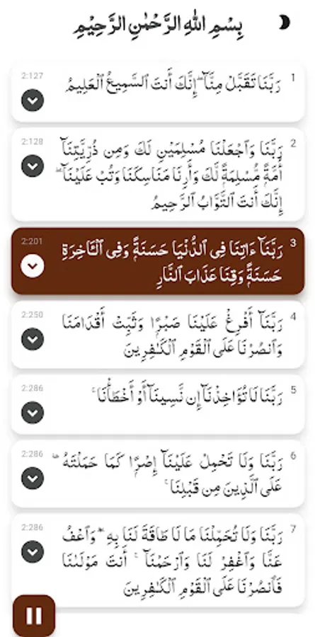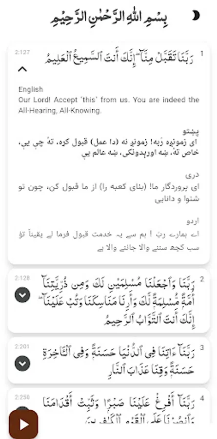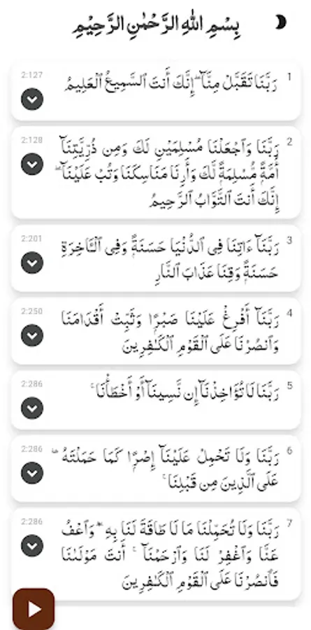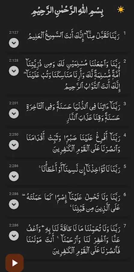 Application includes 40 Rabbana Duas from Quran Majeed with recitation of Omar Hisham Al Arabi