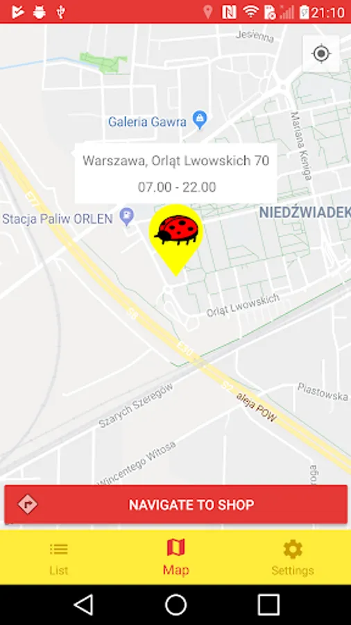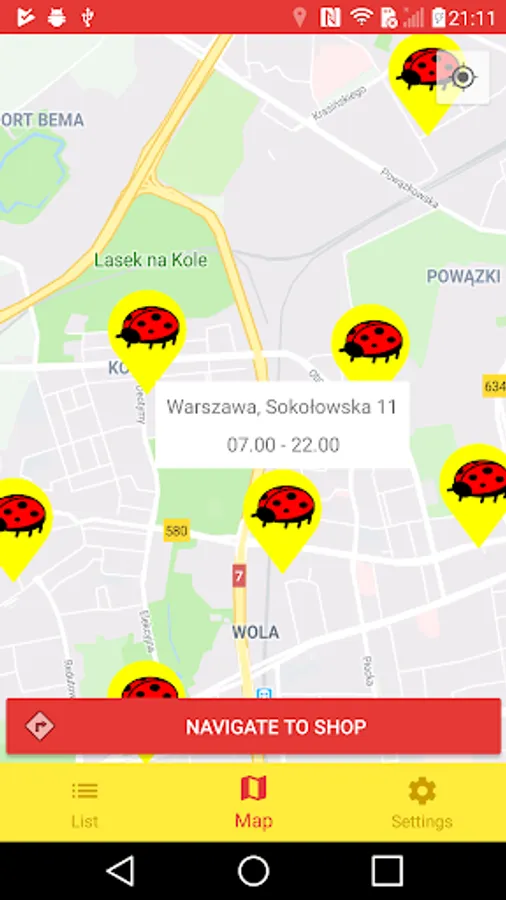 Selecting shop on map allows to turn on navigation (Google map or any other).