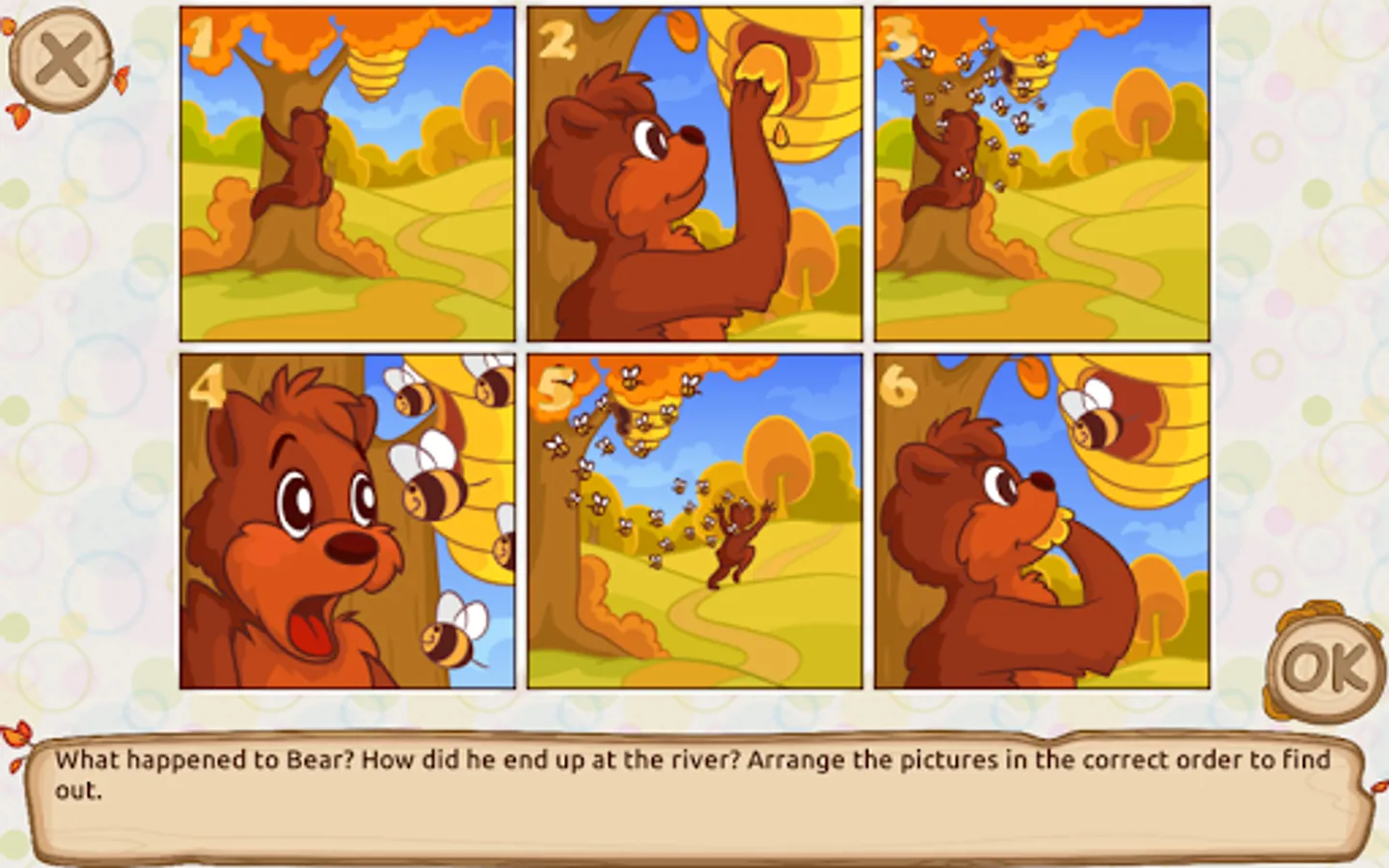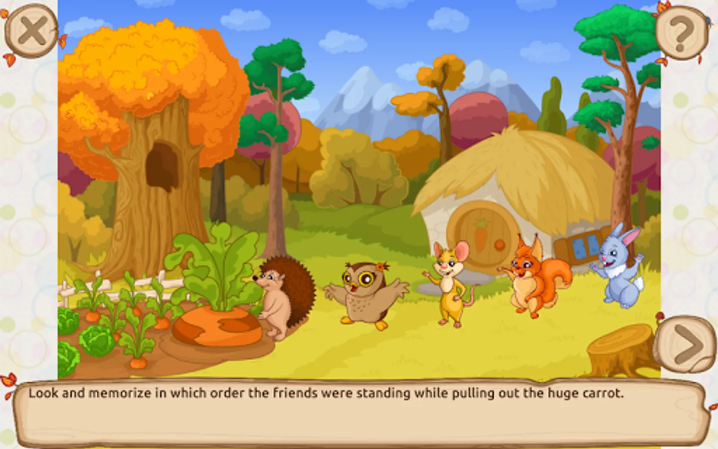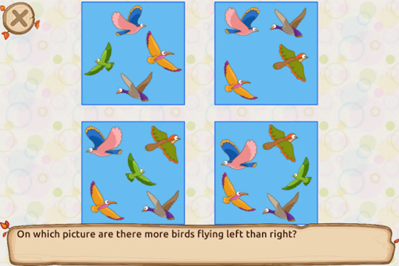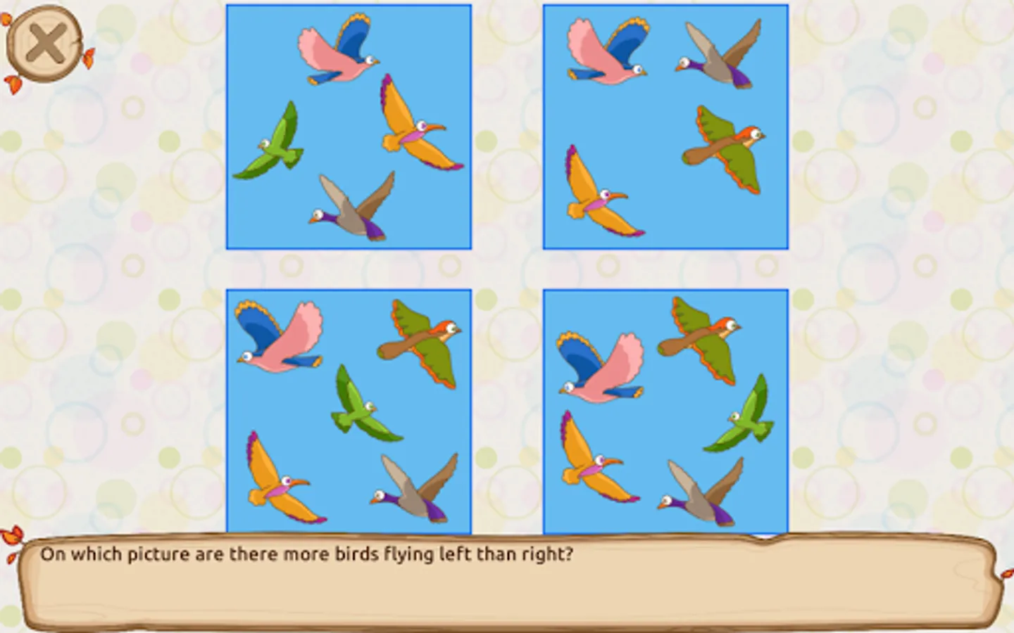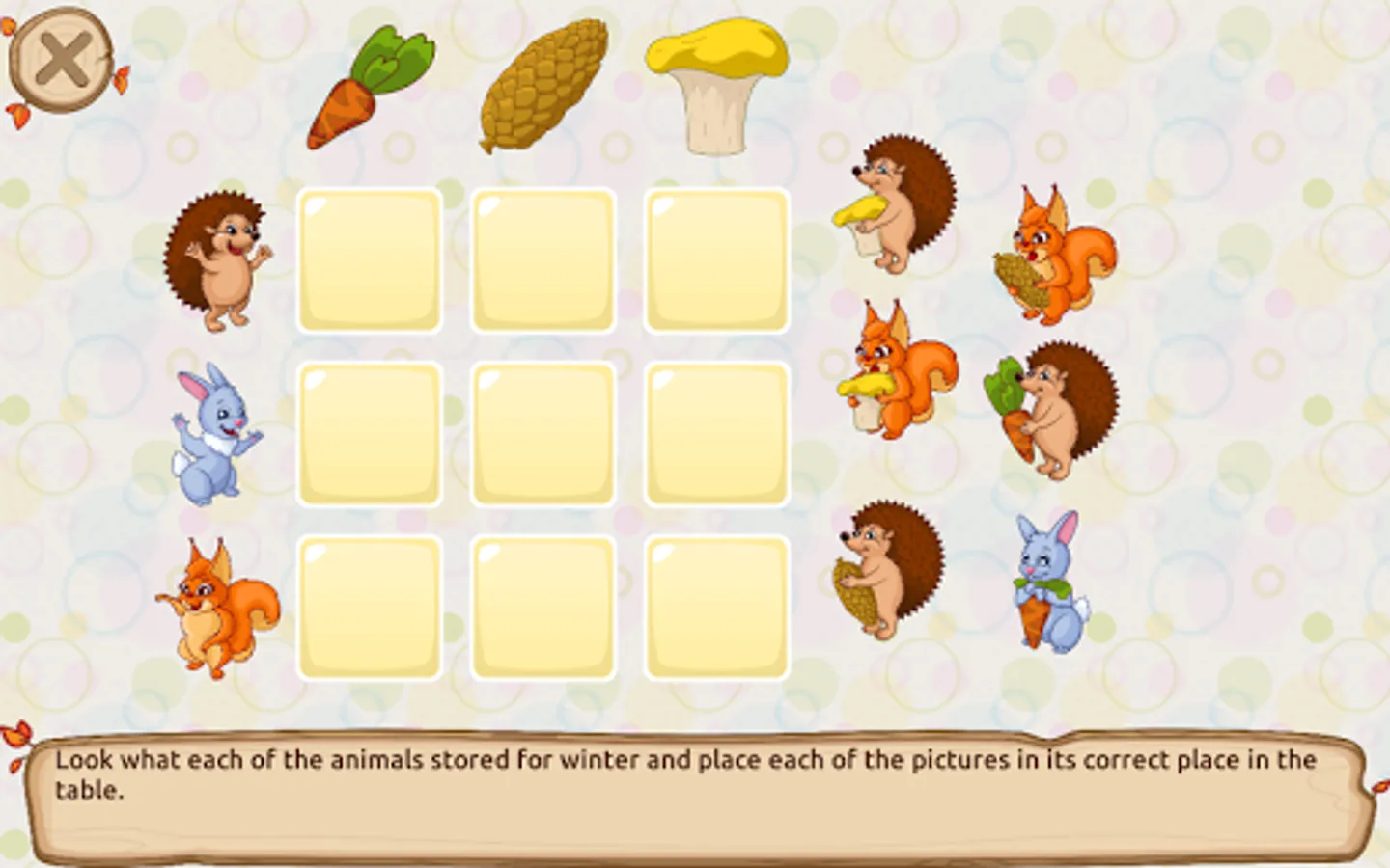 The logic tasks and puzzles are blended into the story. Such a format has proven to be more engaging and fun for kids. The educational tasks are aimed at development of attention, visual memory, logic and spatial intelligence. In total there are over 20 types of tasks including: