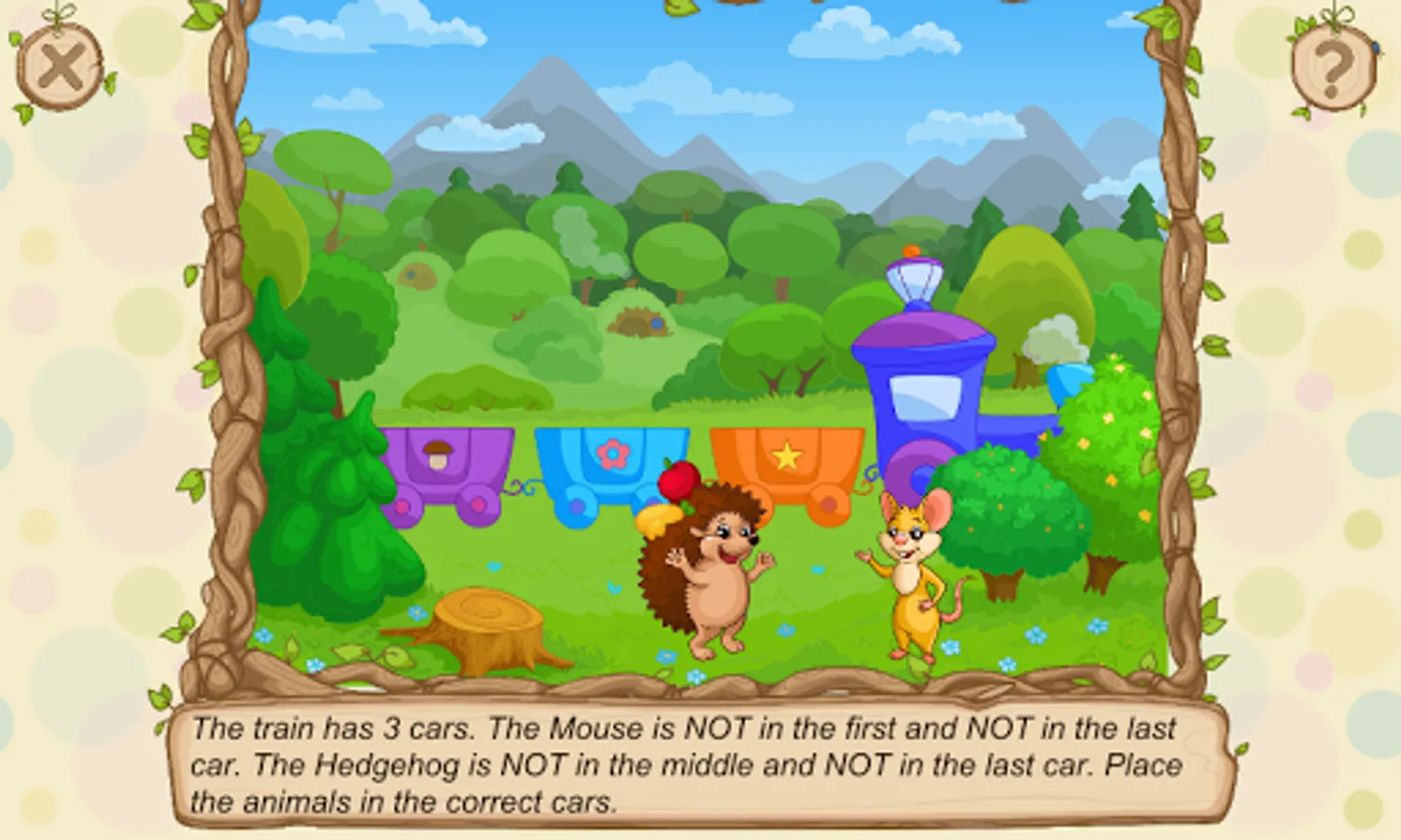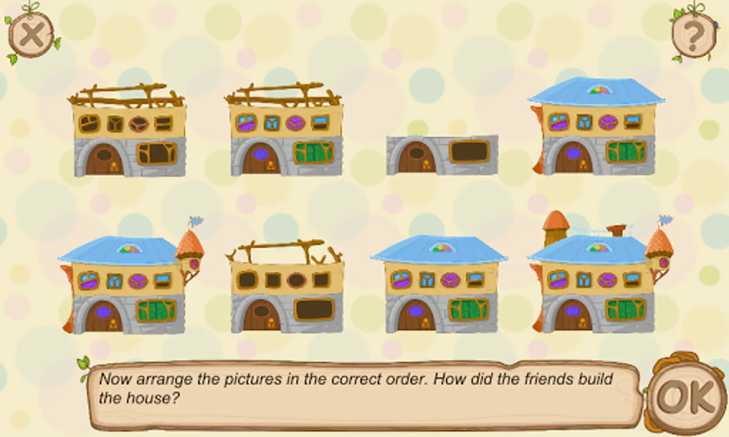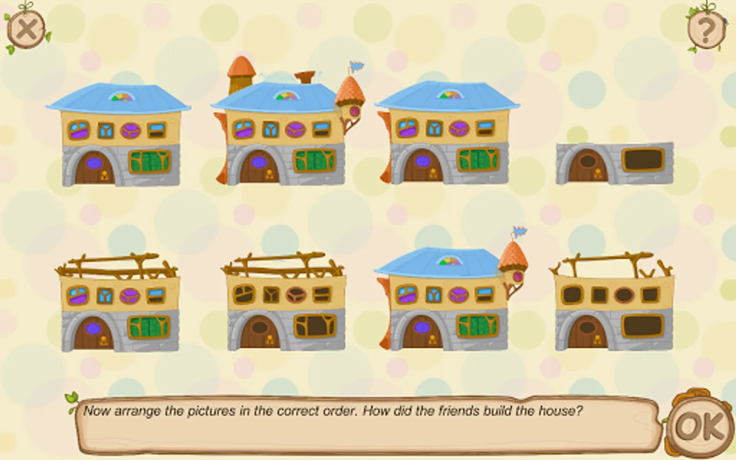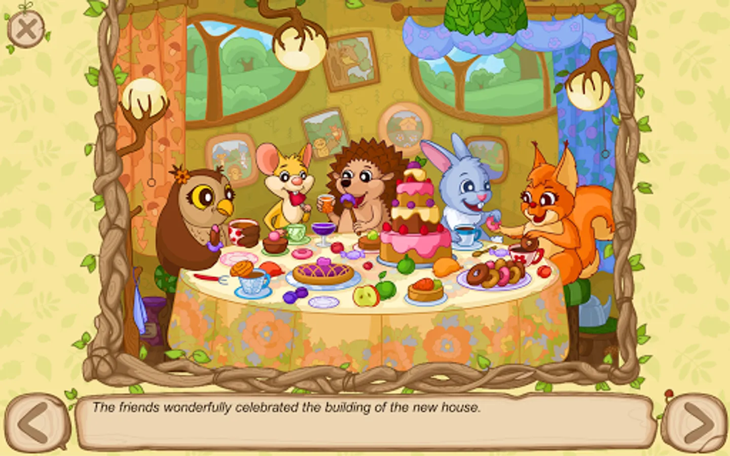 In the beginning of the story, Hedgehog sets off to find the lost shadow of his friend, Mouse. After returning from the journey, he cleans up his house while Squirrel helps him. Then Hedgehog attends Hare's birthday party. In the night, he dreams that he visits a geometry land and gets to know the shapes that live there. In the end of the story, Hedgehog and his friends build a new house in the forest. Such an interesting narrative has sure made this free logical games app for kids as one of the finest preschool logic games that you can download for the kids.