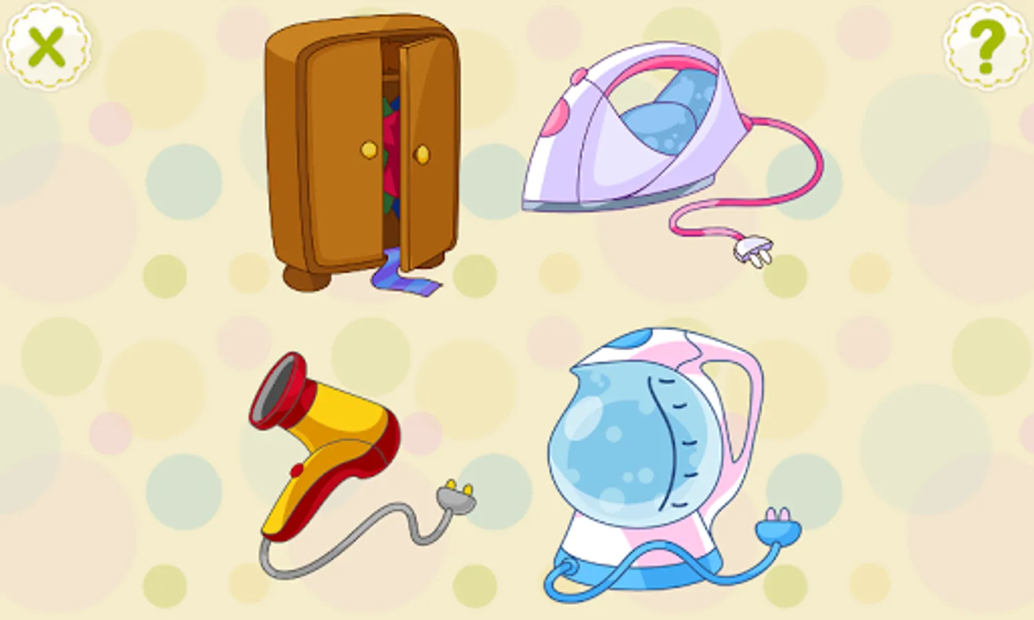 This educational game is aimed at children ages 3, 4, and 5 years old and develops logical reasoning, which is the ability to recognize and classify the important properties of objects.