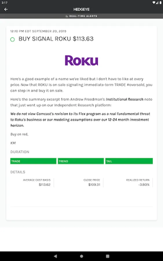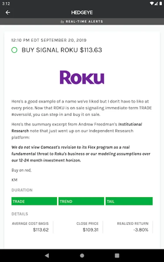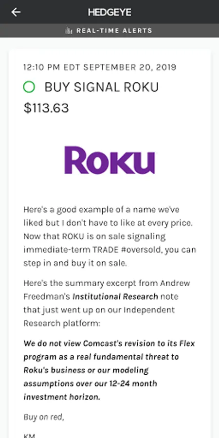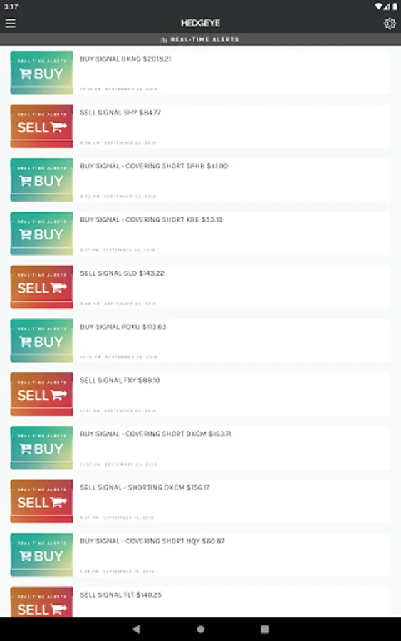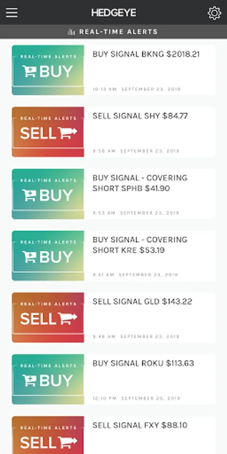 Real-Time Alerts features LONG, SHORT, or COVER stock and ETF signals sent directly by Hedgeye CEO Keith McCullough. Each signal is backed by Keith’s quantitative risk range model and is selected from among the best qualitative ideas of our research analyst team.