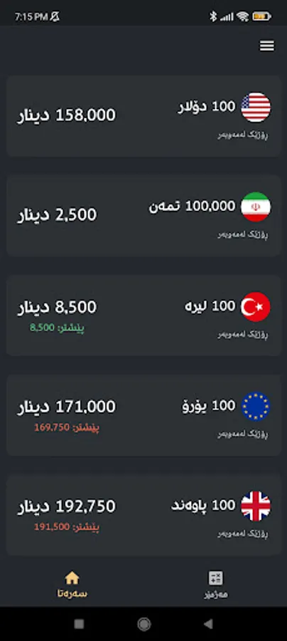•نرخی دراوەکان هەژمێر بکەیت بۆ دیناری عێراقی
