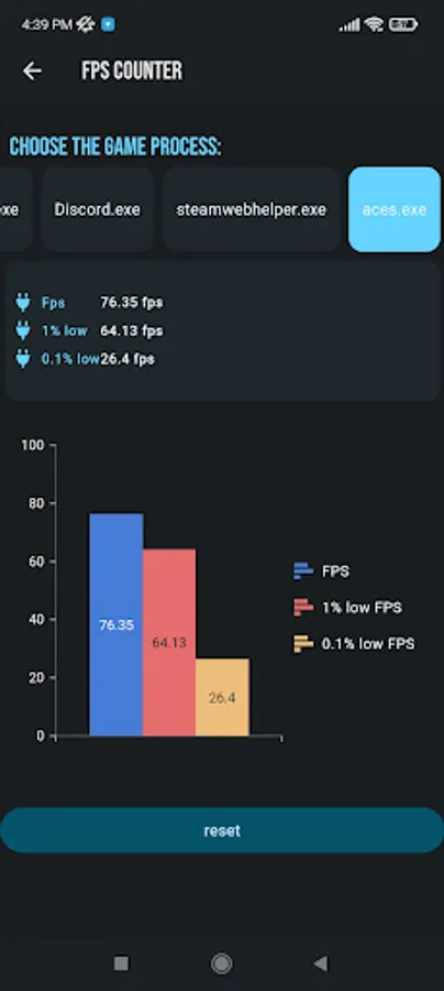 🎮 FPS: gain insights on your fps while playing games, with data for fps, 1% low fps, and 0.1% low fps.