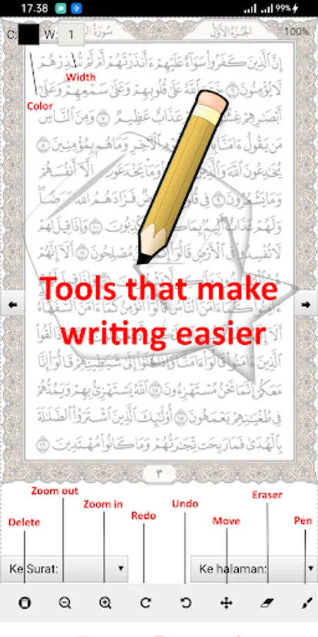 In this app you can reading and writing the Quran using pen or hand to painting letter hijaiyah like alif ba ta.