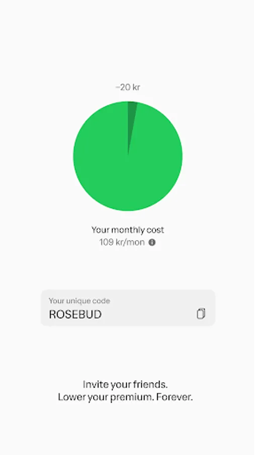 Invite your friends and get a 10 kr discount per month for each friend who switches to Hedvig. If enough people use your personal code, you end up paying 0 kr.