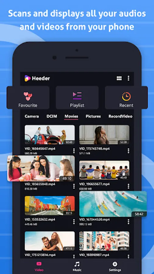 Heeder: Video & Audio Player can play all video formats including 4K ultra HD video files with high definition. It is the best video player that fulfills all your media player needs and an attractive user Interface gives you the best user experience.