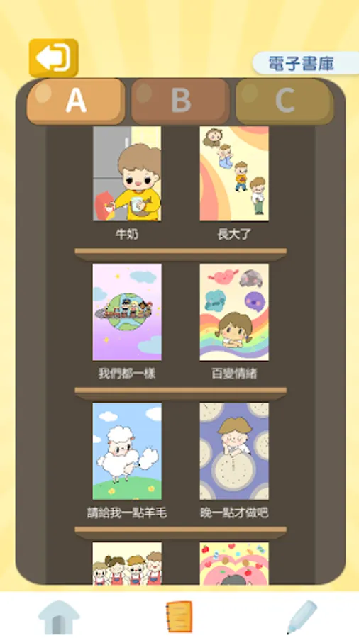 ∎ Parents and teachers can read e-books in the library through the program, and can play simple games related to books to enhance children's interest in reading, enhance their listening and comprehension skills, and promote vocabulary development.