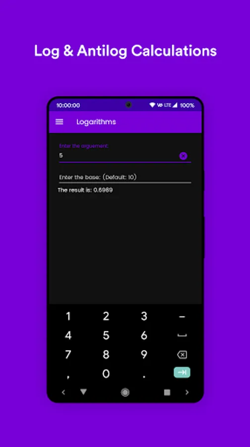 This app can calculate logarithm, anti-logarithm, sin, cos, tan, factorial and much more!