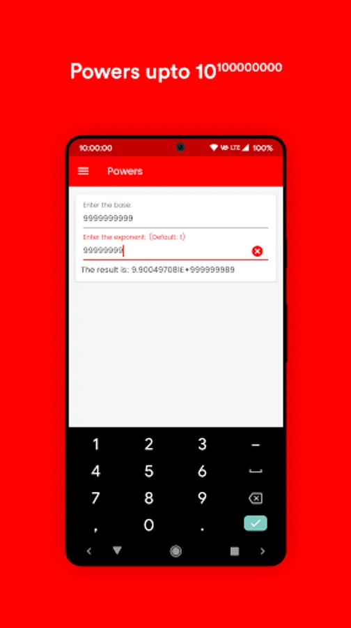 - Calculate power (exponents), antilog up to 1.0E100000000