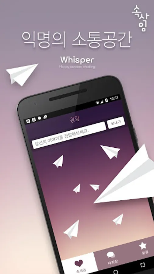 Whisper is a real-time anonymous communication app that allows you to communicate comfortably with the other person.