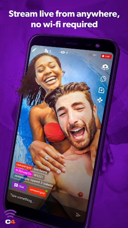 C4 Broadcaster lets you broadcast live video from anywhere. You can broadcast yourself, manage your settings & chat with viewers just like a regular webcam show… away from your webcam!