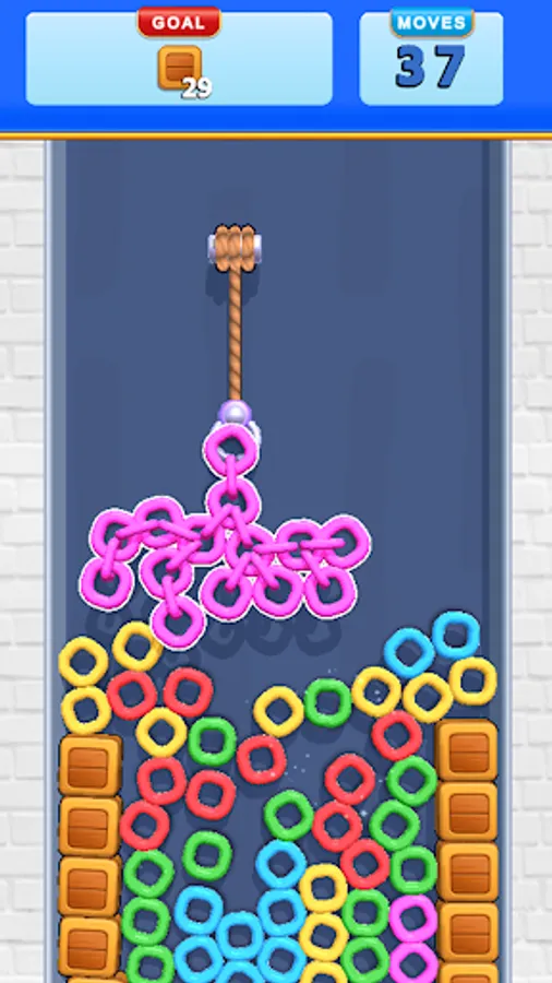 Chain Em All! is a puzzle game where you have to release the hook to connect and pull the chains and reach the goal to end the level.