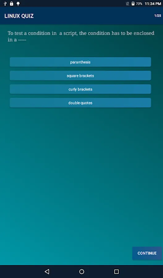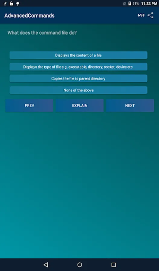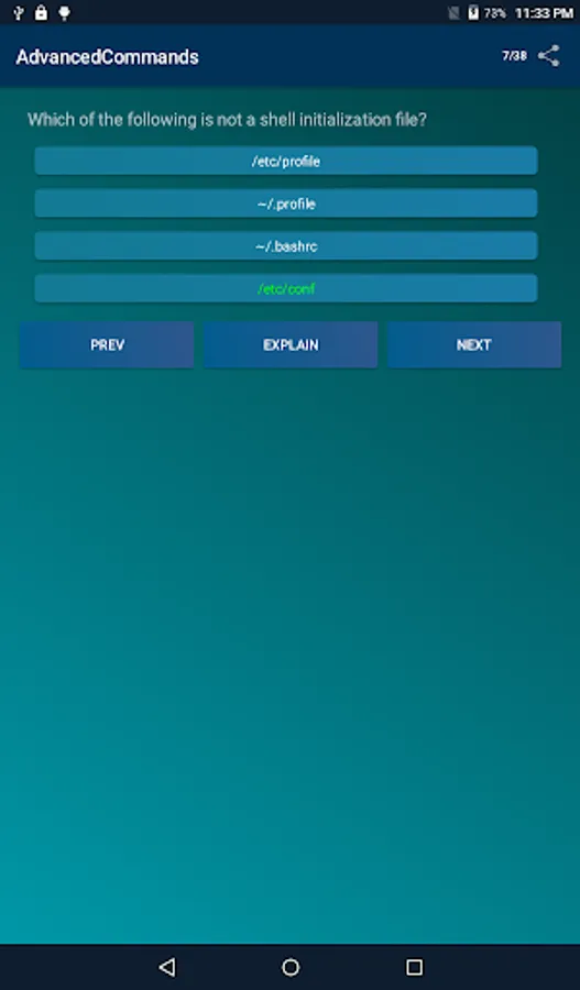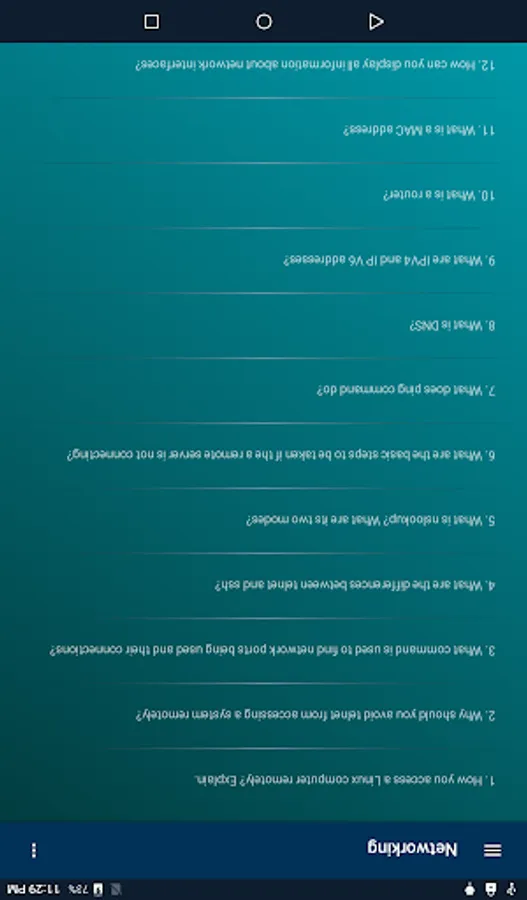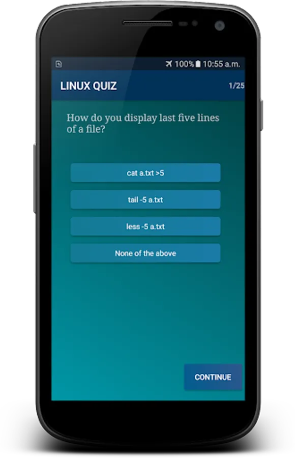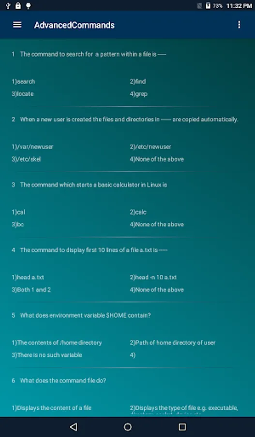 Linux Quizard is a simple offline app for Linux test and interview preparation. It has questions on various commands. It has simple shell scripts. And there are 244 objective questions with answers and explanations.