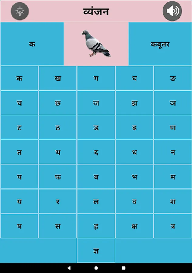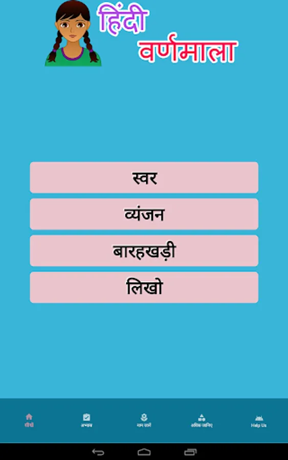 Hindi Varnamala- हिन्दी वर्णमाला is an useful app to learn Hindi Alphabets with the help of pictures and sound. Its attractive and engages user with full attention.