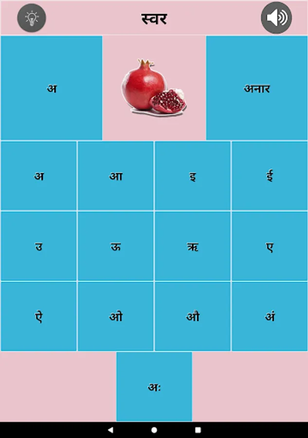 Hindi varnamala for kids (वर्णमाला ) app is an educational app for kids to learn Hindi Vowels (स्वर) and consonants (Vyanjan).Hindi varnamala makes learning Hindi a simple and joyous experience for both, young learners and first time learners.