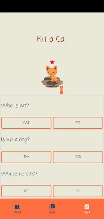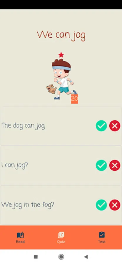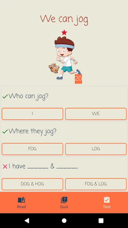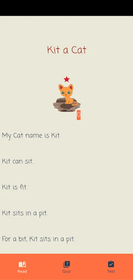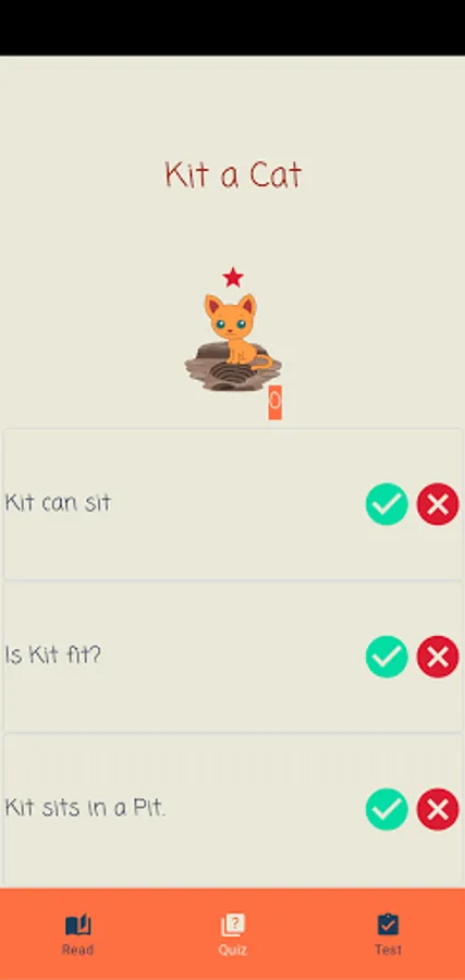 It contains multiple short lessons (rather sentences) which will be read by kids and then based on that they have to answer few questions in the form of selection. True and False exercise is also provided.