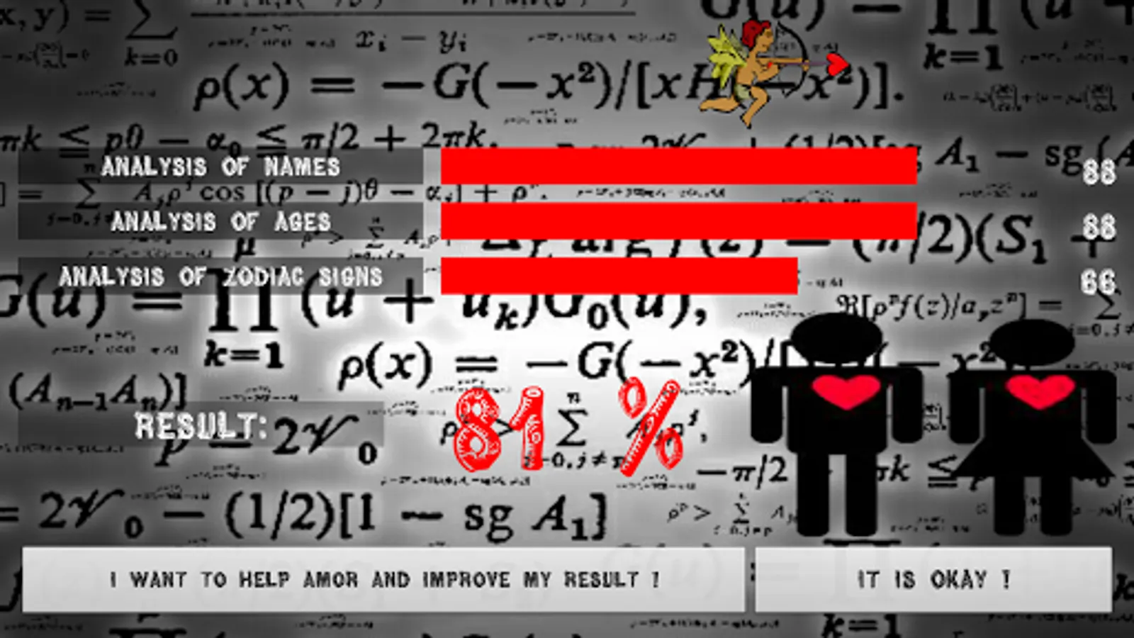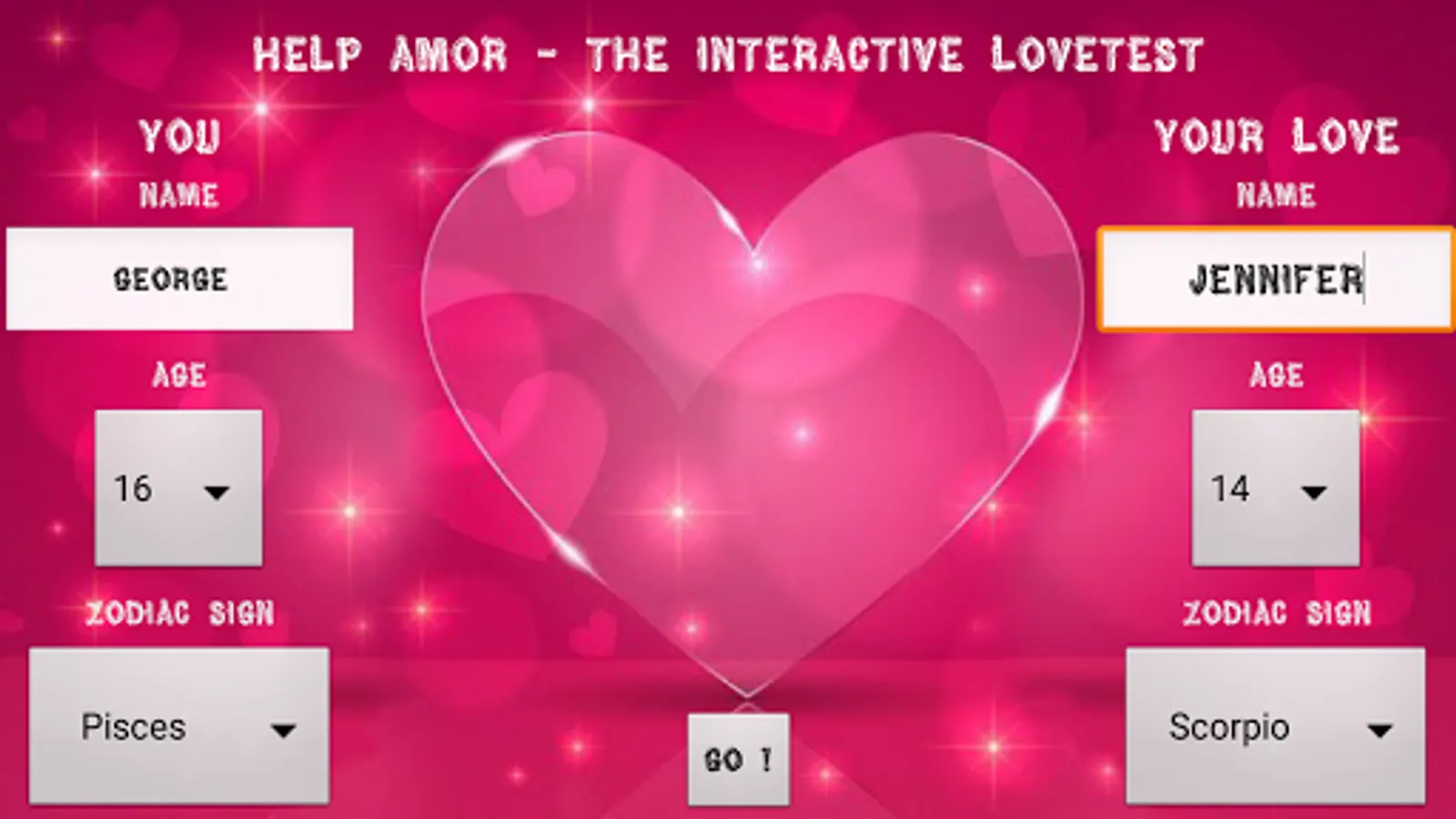 HelpAmor is a love test. You enter the names , the ages and -if known- the zodiac signs and the app
