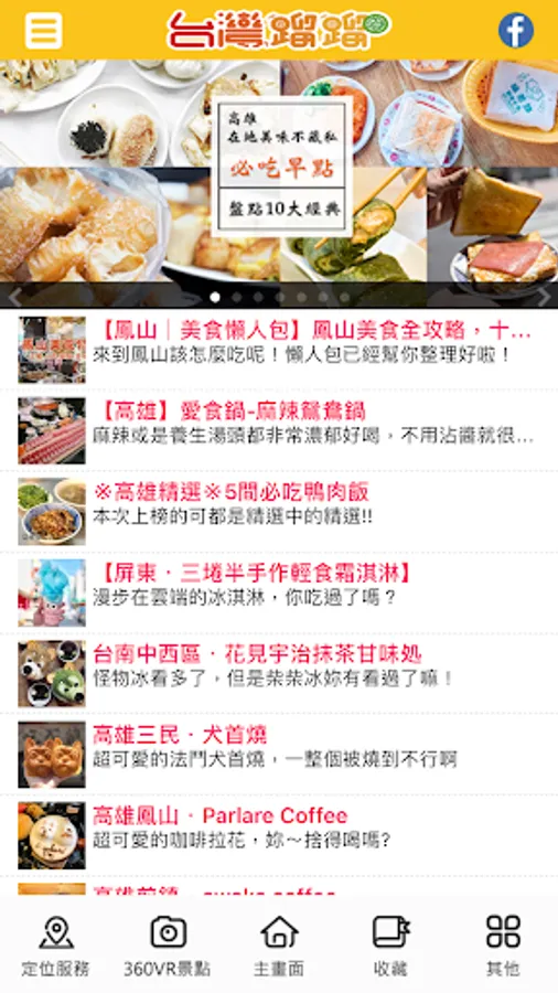 全台分為五大區:北、中、南、東、離島,台灣蹓蹓細心整理出全台的旅遊行程供您參考,當中指定的行程景點包含了720度VR實景,讓您人還沒到就可以先看看景點的美景,再推薦各景點週邊的美食、住宿等資訊,提供您旅程中的相關資訊,您也能針對每個行程提出建議及評分,讓內容更加豐富。