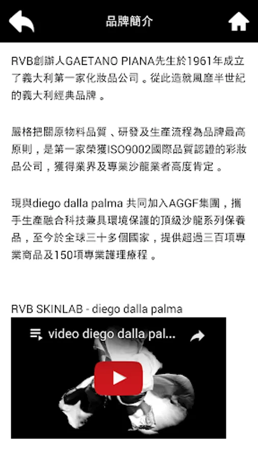 義大利RVB diego dalla palma是歐洲行銷最久也最大的專業保養品牌,通過ISO9002國際品質認證也是歐洲最多美容學校使用的產品。
