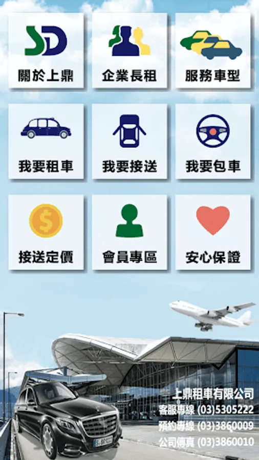 上鼎租車, 營業項目有:專業機場接送、公司企業長期租車(Rental)、商務洽公包車、外賓接送、全省旅遊包車、喜慶結婚禮車、企業公司主管上下班接送、接駁交通車及無線電計程車等。本公司提供乘客DOOR TO DOOR(到府接送)的貼心服務。另外本公司車輛均配有GPRS衛星定位系統,讓車輛調度靈活迅速,可隨時監控所有車輛狀況及所在位置,提供乘客更安全的服務。