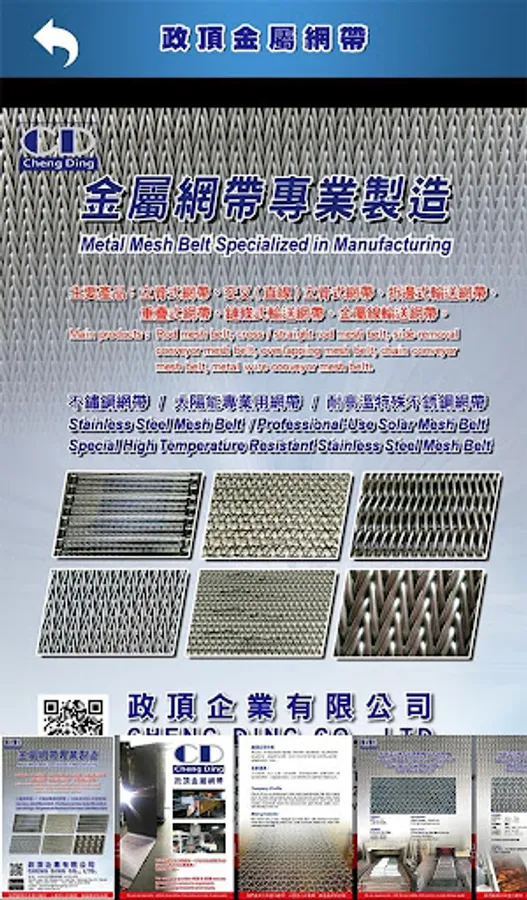 Cheng Ding is a professional metal mesh manufacturer that offers many kinds of mesh belt products such as mechanical conveyor metal mesh belt, conveyor mesh belt, the heat-treatment machine mesh belt, food machine mesh belt, metal wire conveyor belt, quick-freeze ladder mesh, and rhombus mesh etc.