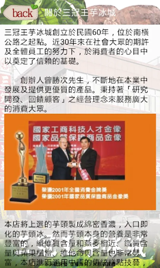 Triple Crown taro Bard was founded in the Republic for 60 years, the starting point is located in the Southern Cross-Island Highway. In the past 30 years, public expectations and the efforts of all staff, in the minds of consumers in order to lay a foundation of trust.
