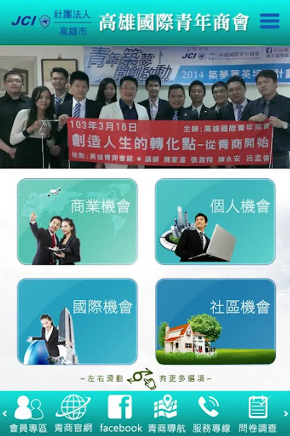 JCI高雄市高雄國際青年商會特舉辦「青年築夢開創啟動」系列活動,希冀結合產、官、學、訓之資源,以創業典範講座、企業行動參訪、開創星課程、免費輔導資源等,協助青年再創新契機。
