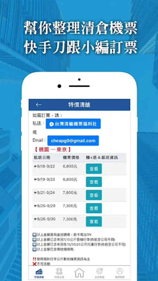 分享限時特價的 清艙機票