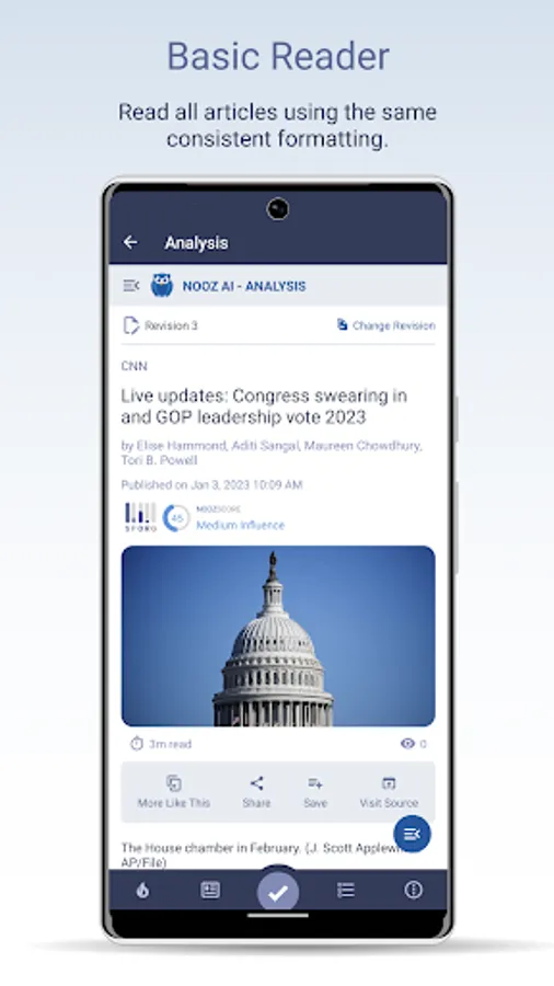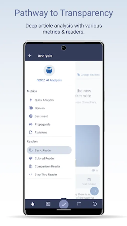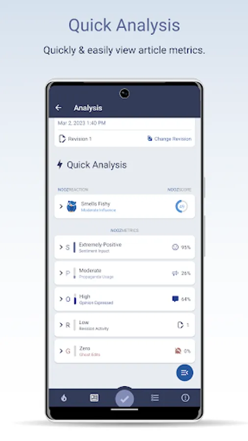 ARTICLE ANALYSIS: Get visual insight into media bias via labels for opinion, sentiment, propaganda, revisions, and ghost edits on each news listing.