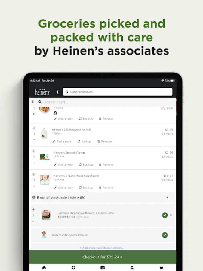 Order groceries for pickup or delivery with the Heinen’s app! All orders are fulfilled by Heinen’s associates who will carefully pick and pack only the best quality groceries for you. It’s everything you love about Heinen’s in the palm of your hand!