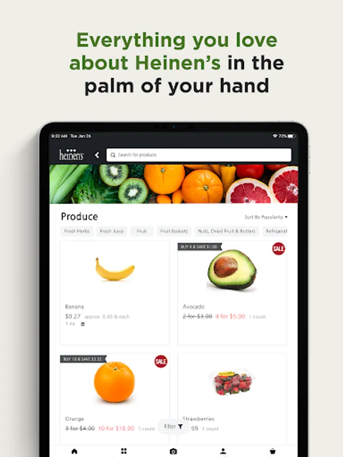 To order groceries through the Heinen’s app, you’ll need to create or log into your Tasteful Rewards account. Not a Tasteful Rewards member? You can easily join through the app when you create your account and start saving today.