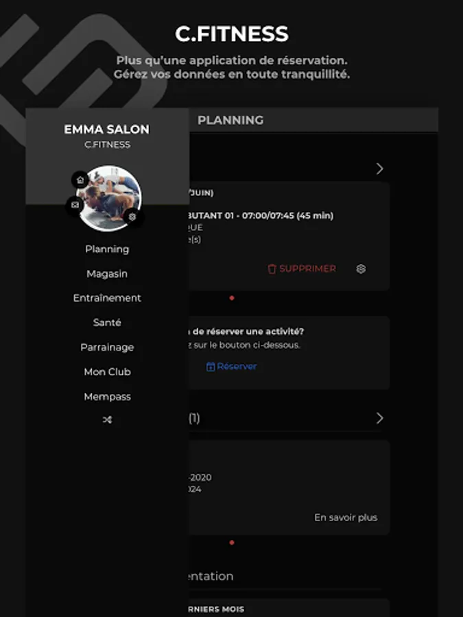 Available to C.Fitness members, your "C.Fitness & Me" application allows you to have all the services of your club in your pocket.