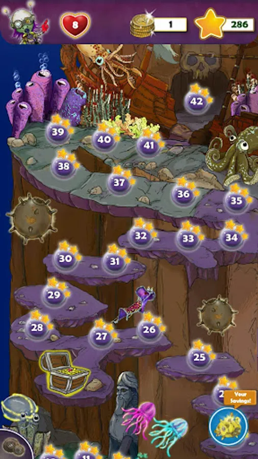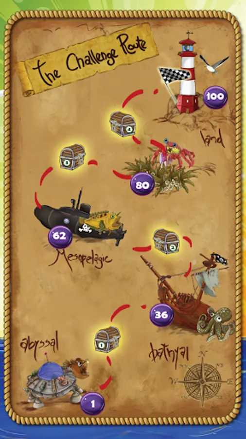 A course down 4 deep sea zones with 100 levels and 4 treasure chests awaits you, demanding skill, ingenuity and logic.