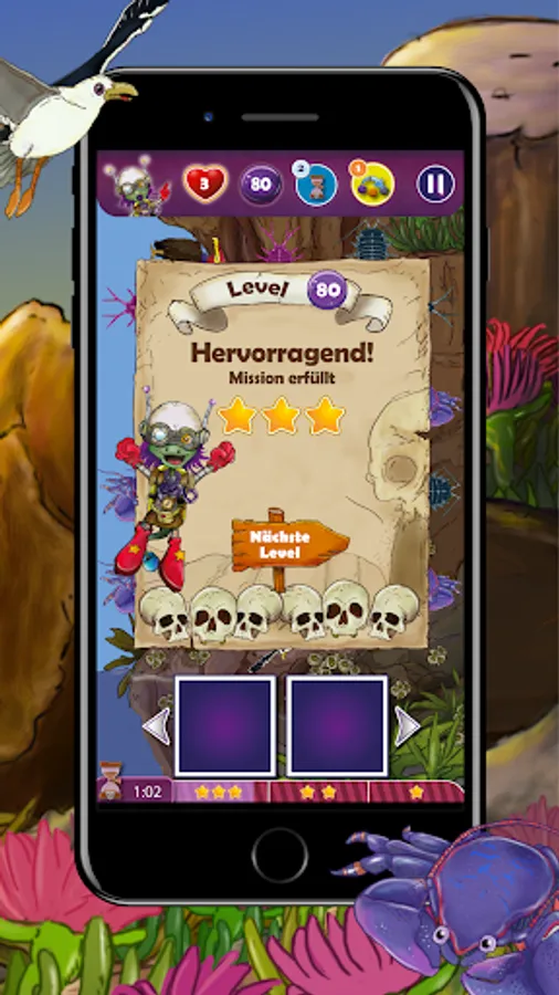 4 Ecosystems, 100 levels and 4 treasure chests to discover. In Broken Skulls Island we play a finite story with 30 creatures of the deep sea.