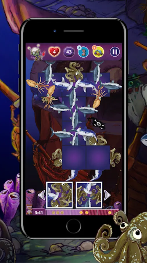 Dive into the adventure! Combine fascinating deep sea creatures. Develop clever moves and your own strategy. 🐟🧩🐠🧩🐙🧩🦀🧩🦈