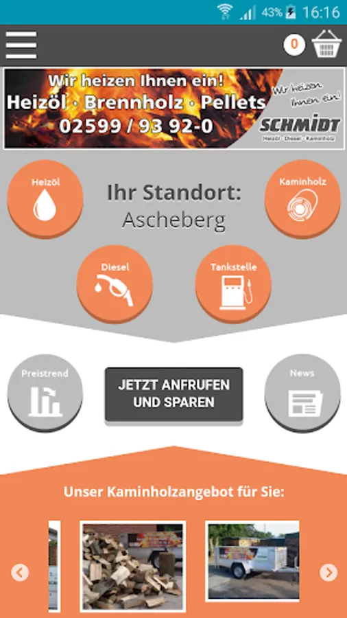 The app of oil-Schmidt! Fuel oil, diesel and firewood ash from Mount Herbern.