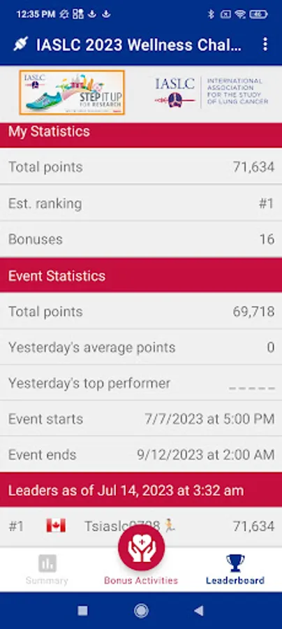 App supporting the International Association for the Study of Lung Cancer (IASLC) Wellness Challenge during the 2023 World Conference on Lung Cancer, September 9-12, 2023 in Singapore.