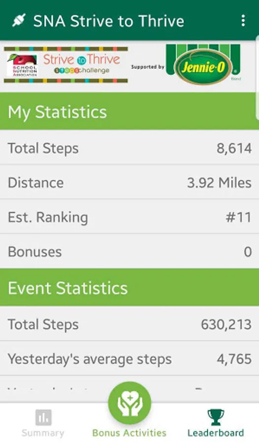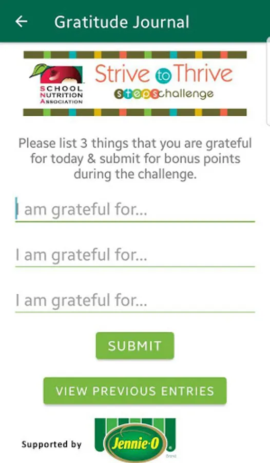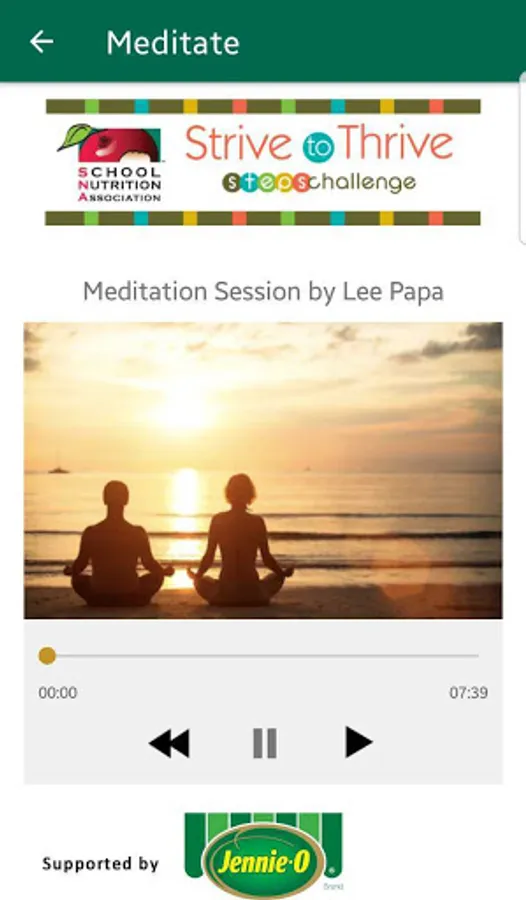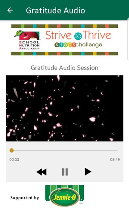 School Nutrition Association (SNA) Strive to Thrive Wellness Challenge, supported by Jennie-O, encourages members of the SNA community to engage in healthy activities and some friendly competition. The app includes meditation audios, a gratitude journal, and integrates activity data from Fitbit, Garmin, and the step tracker integrated into your phone via Google Fit.