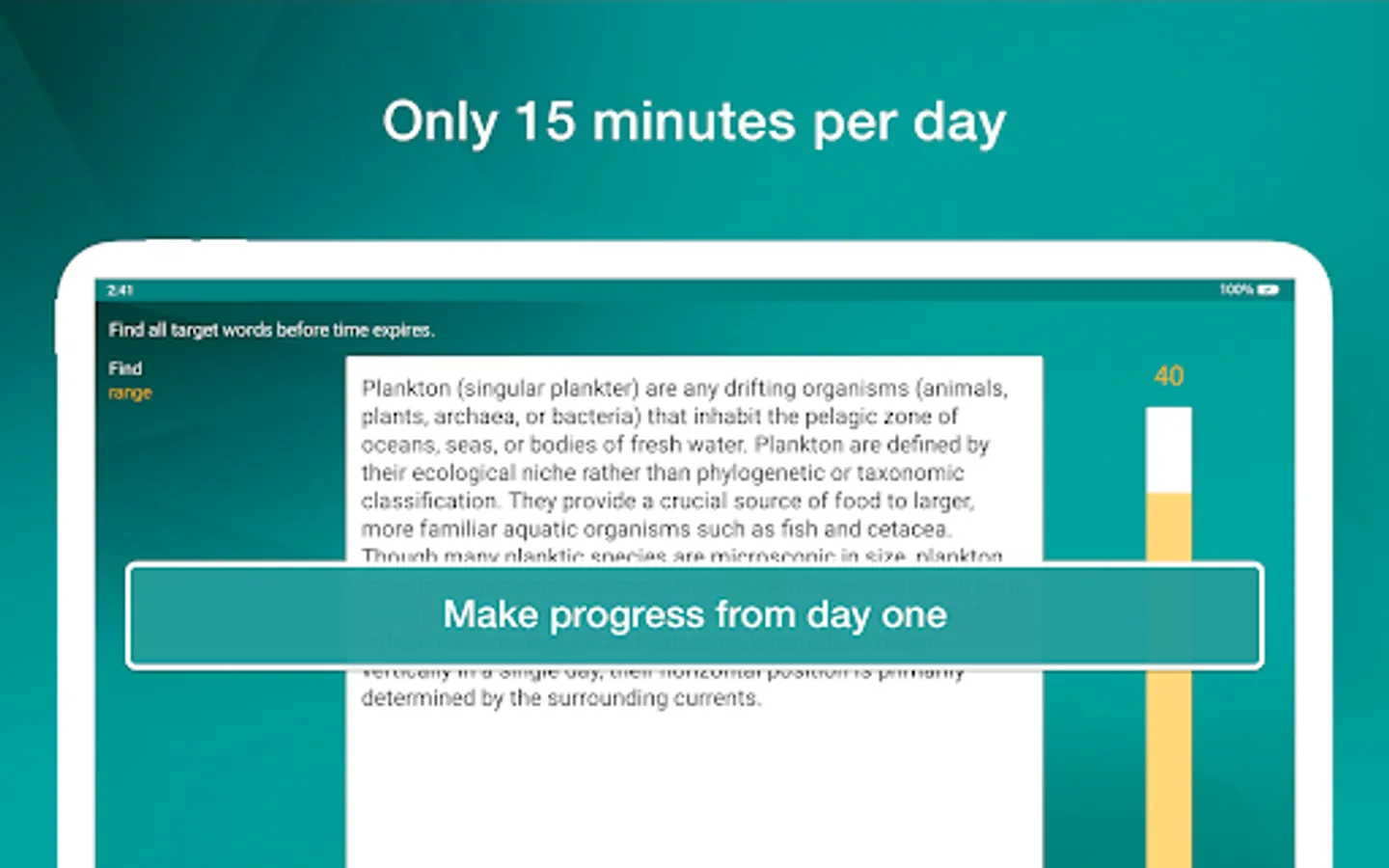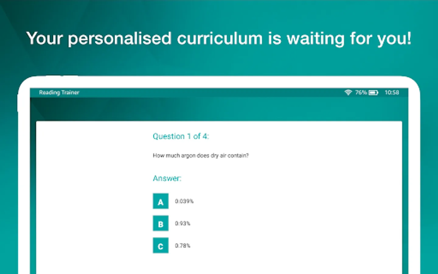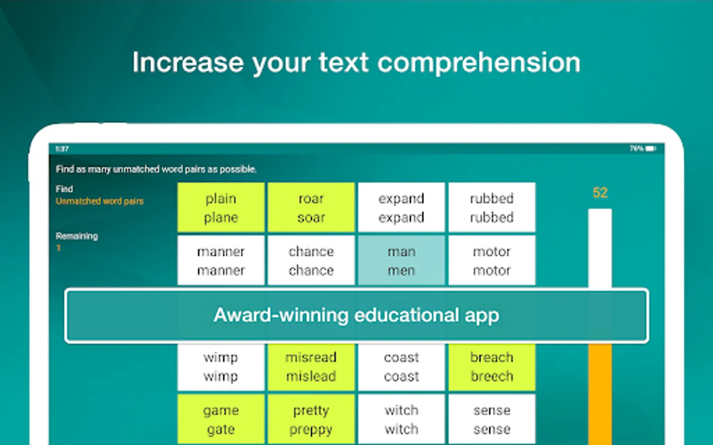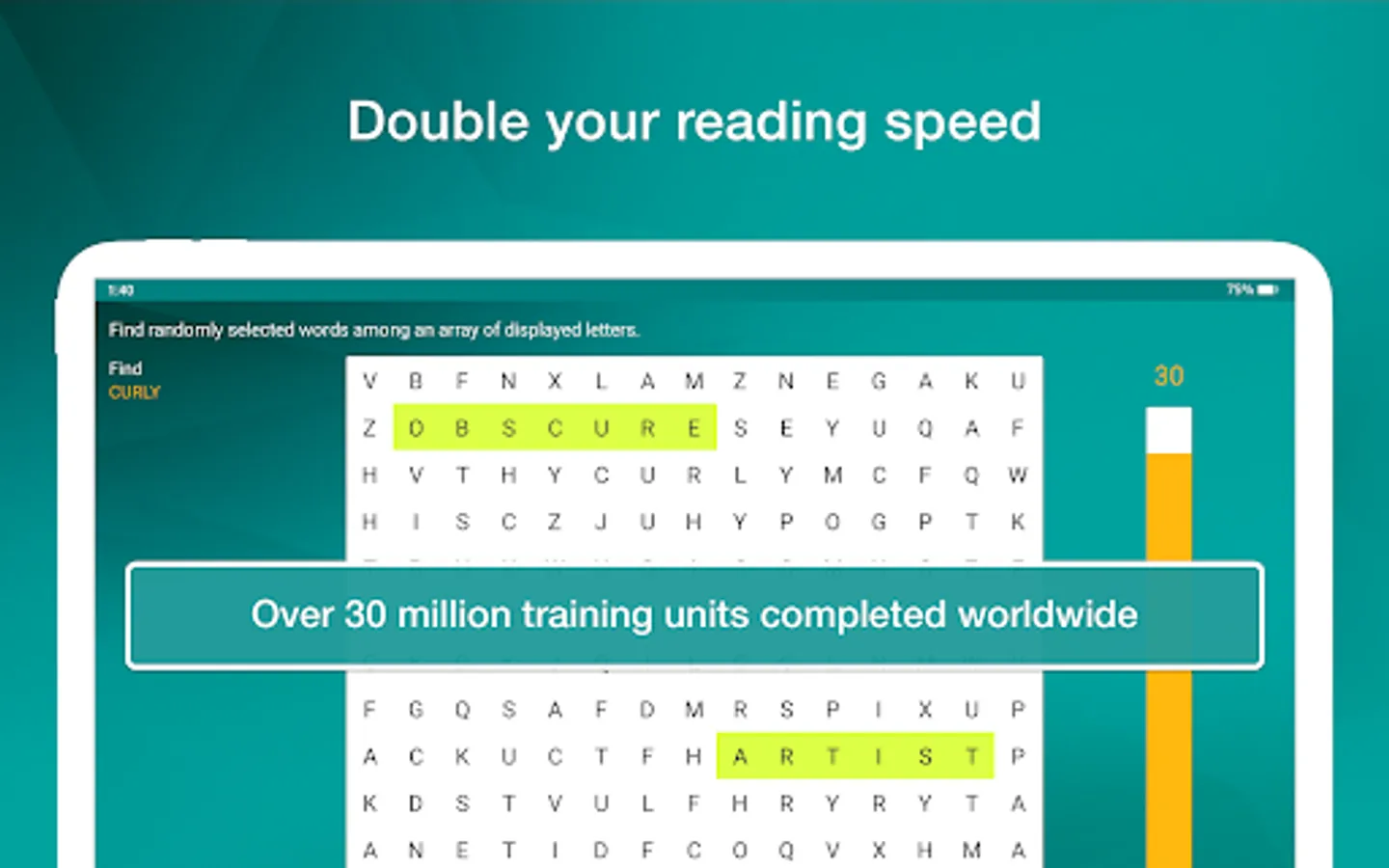 Reading Trainer improves your reading speed and retention rate with many challenging and fun exercises.