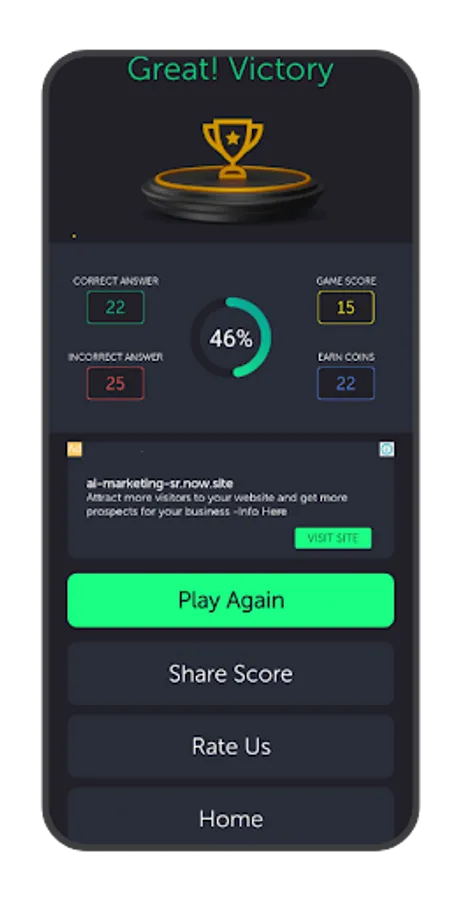 contest: Answer questions non-stop in single mode. Get as many right answers as you can to climb the ladder and win!