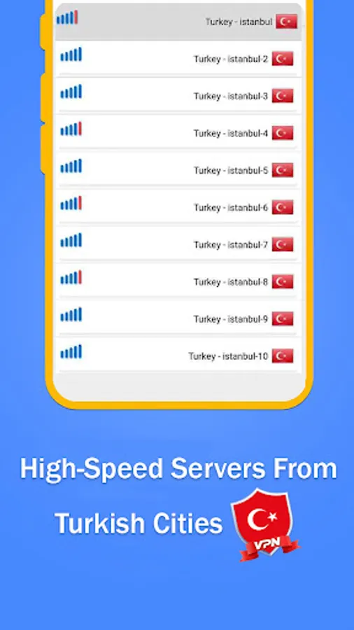 ✪ Enjoy unlimited free VPN Turkish server and get into Turkish websites freely with no trouble. This VPN app will give you unlimited Turkey VPN connection with great speed and security, so that you can browse the internet with ease and comfort.
