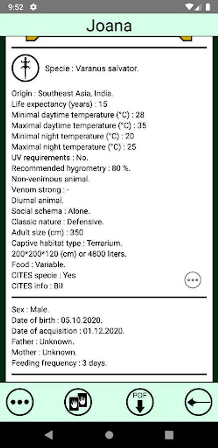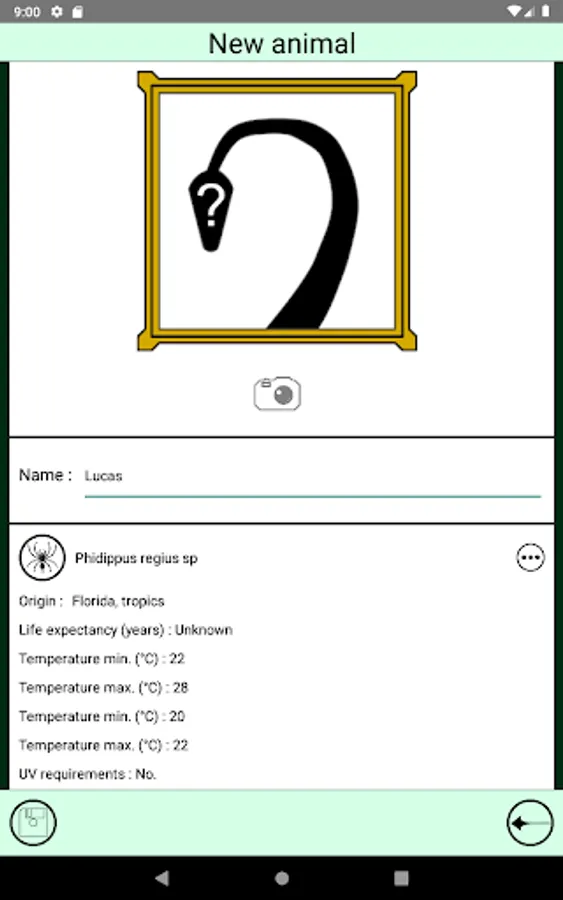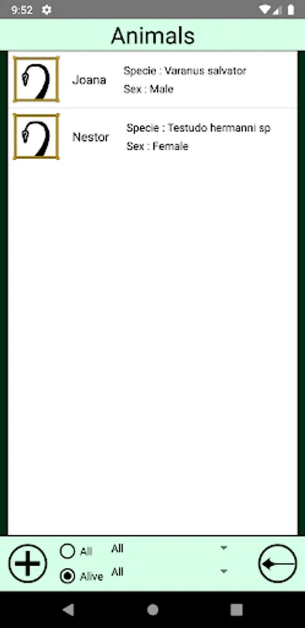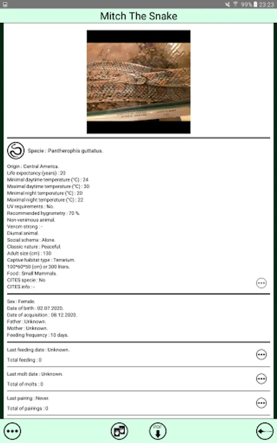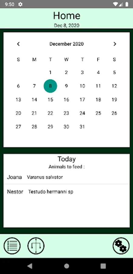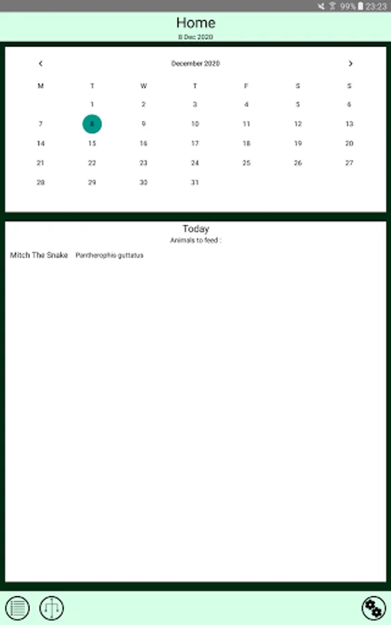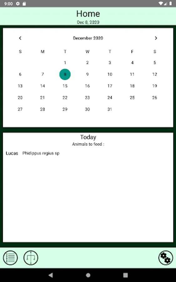 Check the calendar of the app to know which animals must be fed on the selected day.