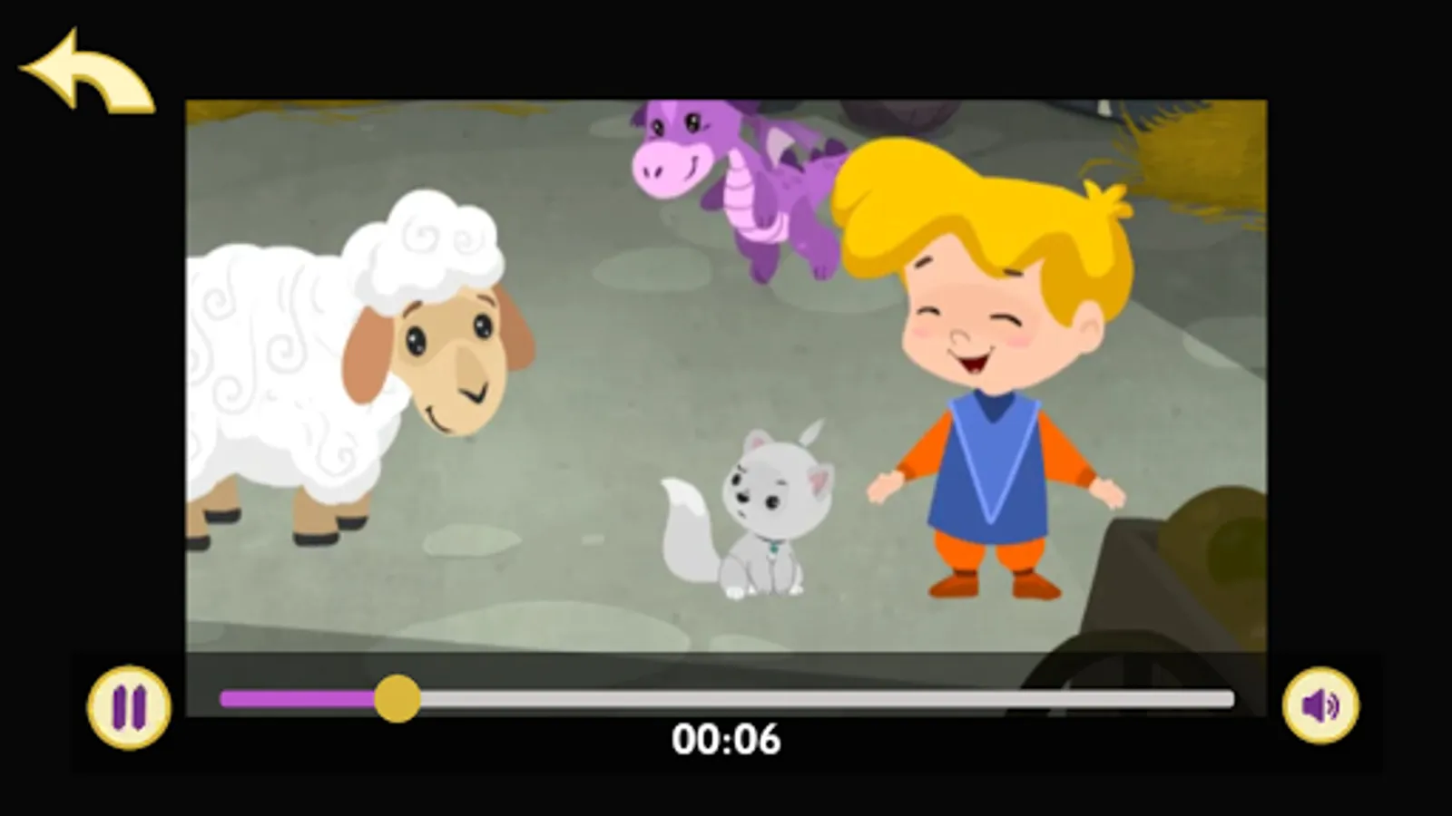 Dragon Tales Series Magic Wand app is a joyful, musical introduction to English for young learners. Didi the Dragon, Sam the prince, and Fluffy the cat playfully introduce basic English language.