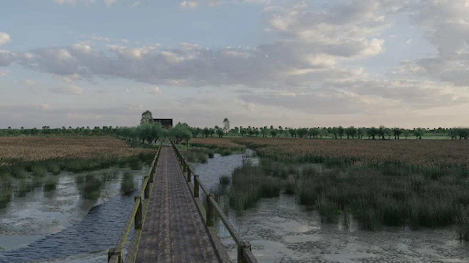 Make a walking route through the Merwedelanden as it will look like around the year 2040.