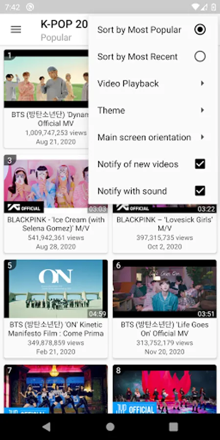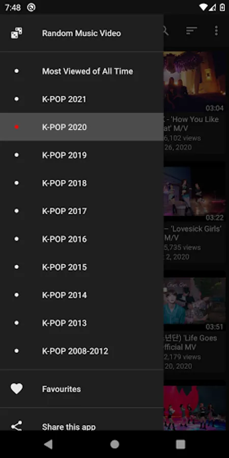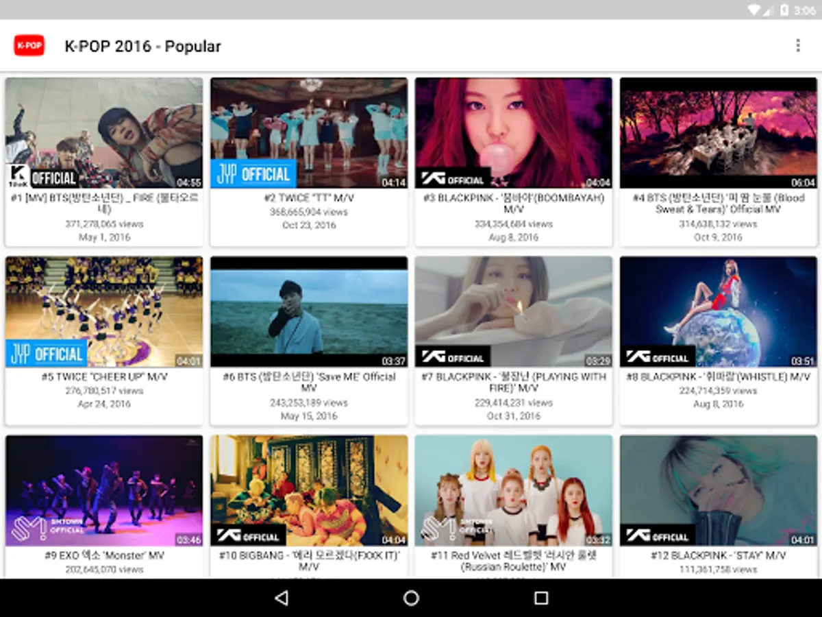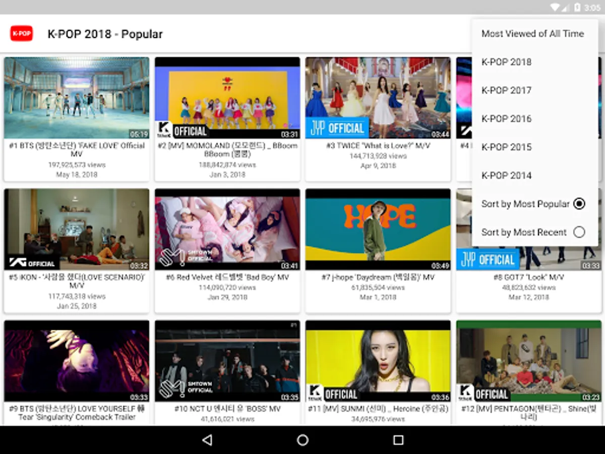 This app helps you get popular (trending) and newest K-POP music videos by year and just keep up with KPOP music trends