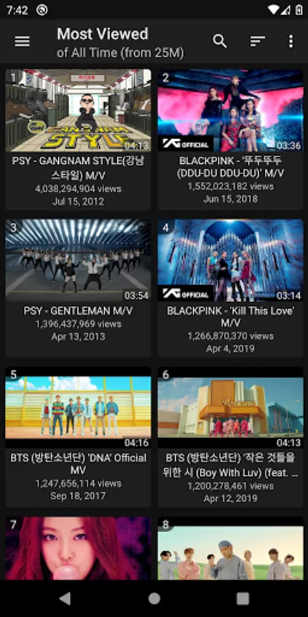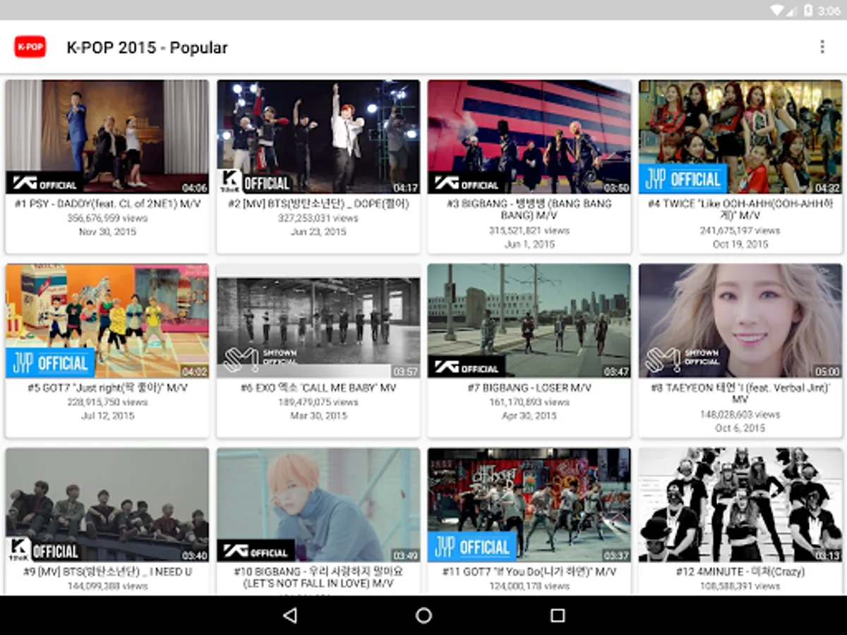 You can also get most viewed K-POP music videos of all time (select "Most Viewed of All Time" from the navigation menu)