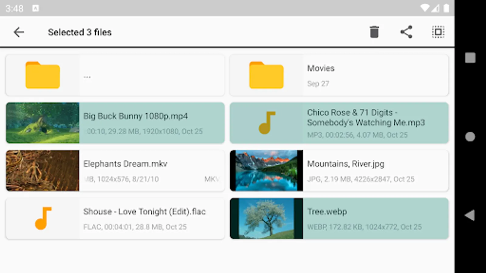 - Delete selected media files